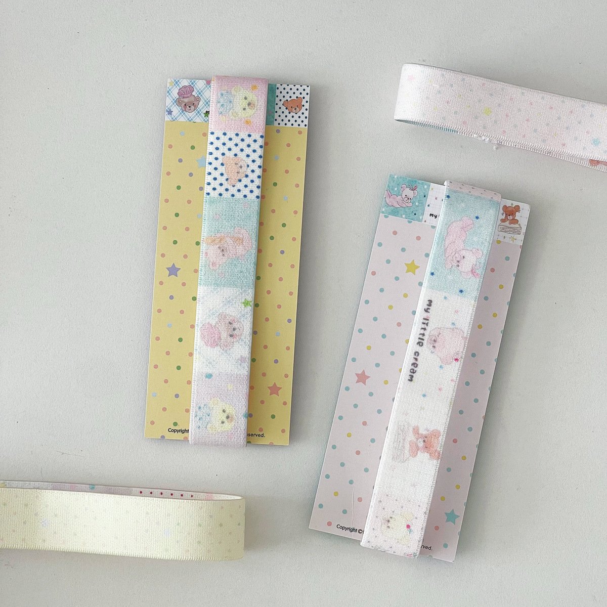 This set of cute elastic journal bands is designed to fit A7 and M5 size notebooks, offering a practical and decorative way to keep your journal securely closed. Made from soft, stretchy elastic material, each strap features adorable cartoon patterns (including bears, strawberries, polka dots, and star designs) that bring a playful ins-style charm to your stationery. The double-sided design adds extra versatility, allowing you to showcase different cute looks. These bands are not only functional for preventing your notebook from opening accidentally but also serve as a lovely decorative accessory for your journal, planner, or diary. With a variety of charming patterns available in one set, they make a great addition to your stationery collection or a sweet gift for fellow journal lovers.